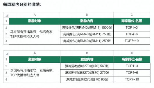 图片来源:TikTok Shop“马泰跨境商家及 TSP 自播激励政策(对外)”文件