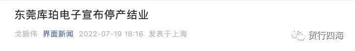 7 月 18 日,拥有高新技术企业头衔的龙头代工厂库珀电子,因受多家跨境电商大卖的货款拖欠,宣布停产结业。