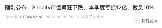 7 月 26 日,在经历了 7 个月股价跌跌不休后,全球电商 SaaS 龙头——Shopify 创始人兼首席执行官 Tobi Lütke,公布了将裁员 1000 人的计划。