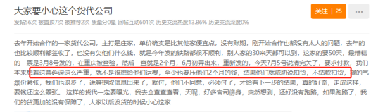 据该卖家说,他去年找了一家货代公司合作,打的旗号是庄家,单价确实比其他货代便宜,而且没有账期。去年的单子都比较顺利的签收了,卖家也不欠货代的钱。