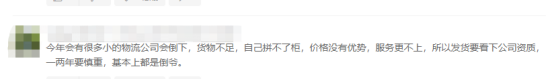 其他卖家表示,这个卖家心真大,像这种刚成立没两年的公司也敢发货。找货代公司至少要五年以上的。