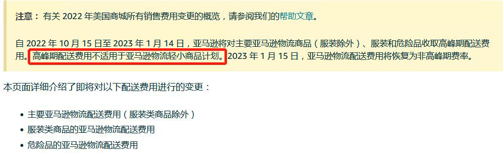 不过就在广大卖家一阵阵吐槽声之外,也有卖家幸运地躲过了此次涨价劫难。这是怎么回事呢?我们来看看这次 FBA 涨价政策的一个细节:高峰期配送费用不适用于亚马逊物流轻小商品计划。