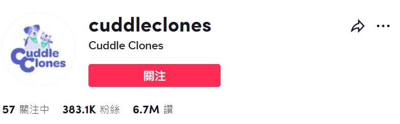 @cuddleclones 在 TikTok 获得 38 万粉丝,670 万点赞,观察账号主页,在简介中,品牌标明每一份订单都会拿出一部分给流浪猫/狗购买食物。主页视频大部分都是关于铲屎官收到定制玩偶后的反应。视频大部分播放都是十万左右,二十万左右。