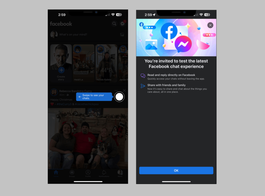 就在 TikTok 发邮件鼓励用户修改 DM 权限的前几周,Facebook 也把多年前独立出去做成 Messenger 的 DM 功能又加了回来。Facebook 似乎在和 TikTok 做着相同的事,通过强化私信功能的存在感提升平台的社交属性,对于媒体平台起家的 TikTok、和校园社交起家但后来越变越复杂的 Facebook 而言,都需要用户对自己更有粘性。