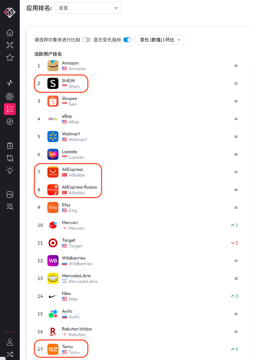 根据 data.ai 公布的今年 1 月 iOS 全球购物类 App 月活用户排行榜数据,其中 Shein 排名第 2,速卖通排名第 7,Temu 则排名第 17。不断上升的全球电商用户量排名,使得这三家中国基因电商平台在海内外备受关注。