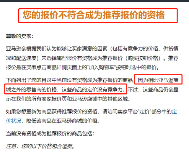 为了赢回“价格最低的在线零售商”优势,亚马逊甚至发出了强制一些卖家降价的邮件,试图夺回竞争力。根据外媒报道,许多卖家收到了来自亚马逊的通知邮件,声称由于商品定价错误,店铺 listing 已被停用,卖家需要调整价格才能重新上架销售。