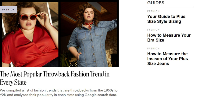 通过 Dia&Co 官方网站就能看到,服装模特一般都是微胖或大体重胖女孩, Dia&Co 用同样为大码女孩的模特试穿衣服并做宣传照,秀出她们的自信和时尚,让更多大码姑娘重塑自信,缓解身材焦虑。