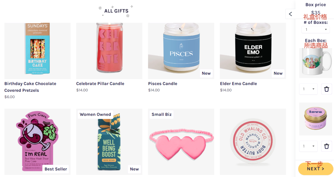 同时,每件商品都标明了价格,这意味着发件人可以准确把握礼盒预算。