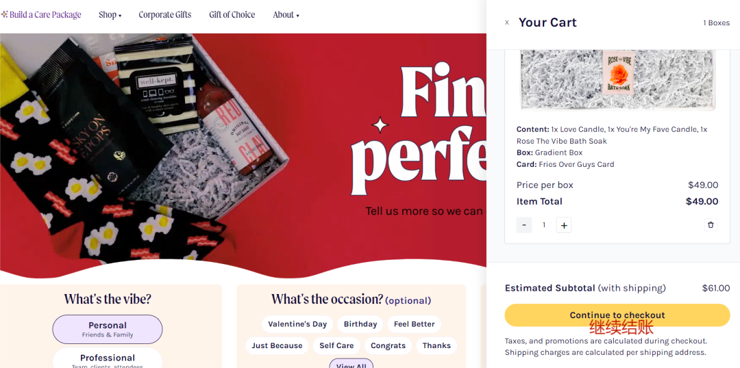 在 Happy Box 独立站定制礼盒仅需 4 步:选择礼品、选择礼盒、选择贺卡和支付。