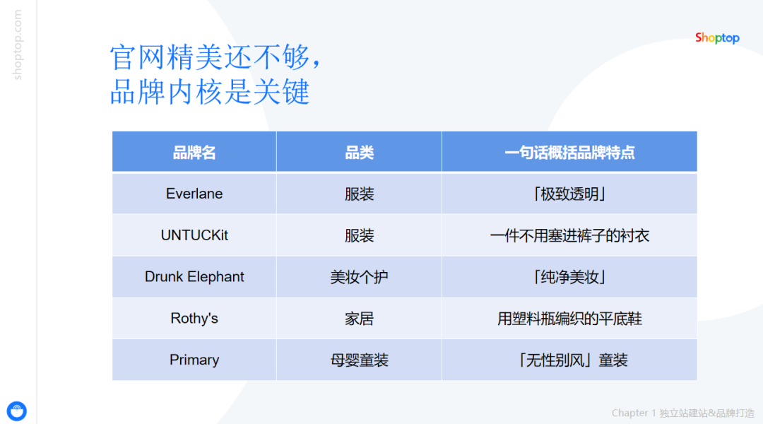 Shoptop 独立站品牌出海专家 Jair,在《DTC 标杆品牌打造策略——从建站到营销快速落地》直播分享中曾提到,“官网精美还不够,品牌内核是关键。”