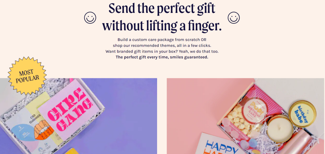 用一句话概括 Happy Box 的品牌特点,就是“Send the perfect gift without lifting a finger.(无需费力即可送出完美礼物。)”