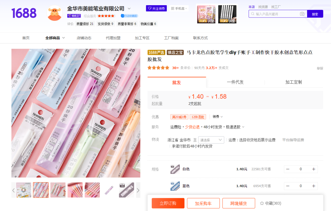 而同类型商品在 1688 上售价为 1.4 元。