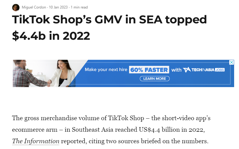 而从 TikTok Shop 在东南亚市场的表现来看,由于社交电商模式在当地发展迅猛,这为 TikTok 电商的发展带来了好处。数据显示,TikTok Shop 在印尼直播电商市场中的排名第一,在 2022 年,其在东南亚的 GMV 更是达到了 44 亿美元。