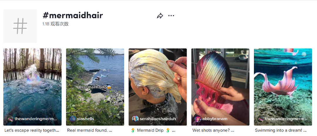 mermaidcore 不仅体现在服装饰品、家居装饰上,也正成为一种新的美容趋势。彩虹色的眼妆、珍珠色的美甲、美人鱼般的湿发造型等,深受大众的喜爱与追捧,成为今年新的美容时尚。TT123 了解到,就美人鱼发型而言,#mermaidhair 这一标签浏览量就高达 11 亿,可想而知,这背后蕴含的巨大商机。
