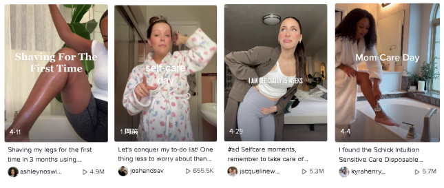 自去年 5 月起,Schick Intuition 开始在 TikTok 官方账号上展示产品、并向女性用户提供相关剃毛建议。