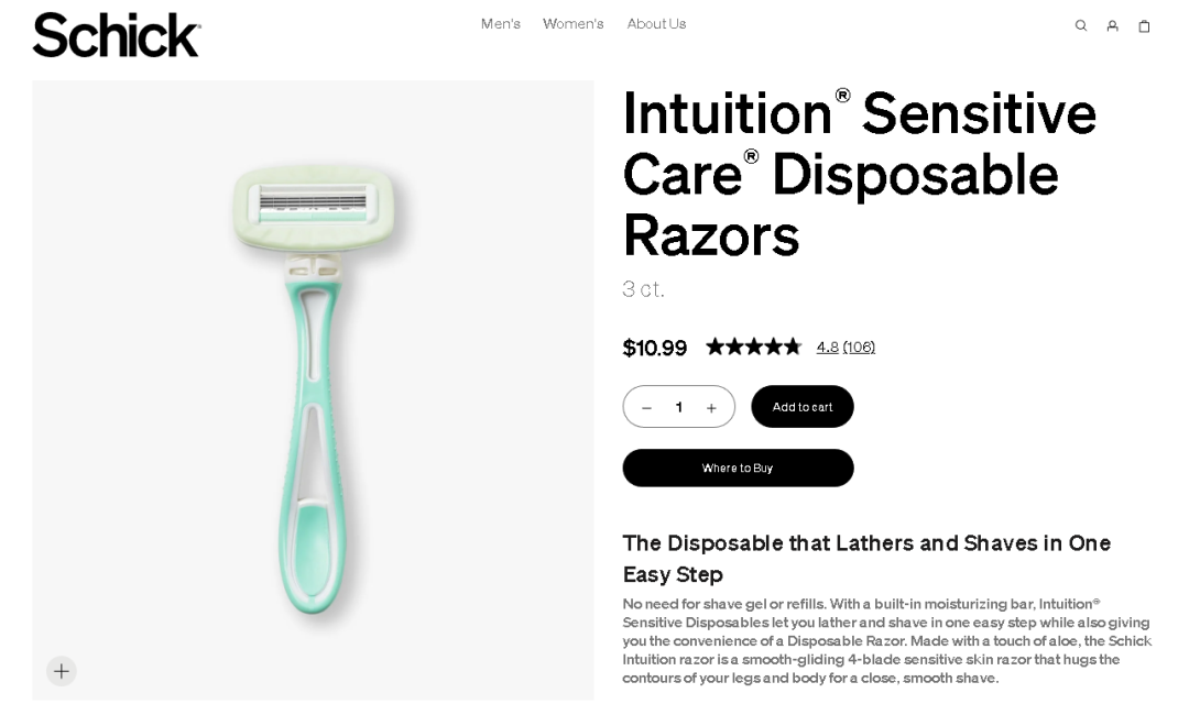 从其账号主页进入官网,我们可以看到,博主同款 Schick Intuition 售价 10.99 美元,产品评价高达 4.8 分。