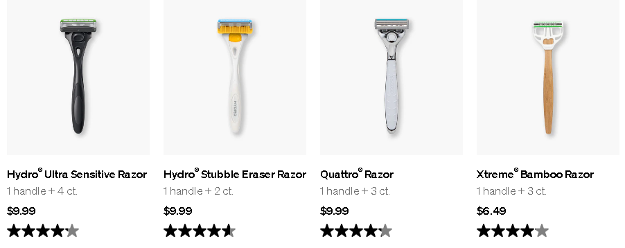 除了剃须刀,Schick 还生产和销售其他男士/女士的个人护理产品,如脱毛膏、剃须凝胶等。