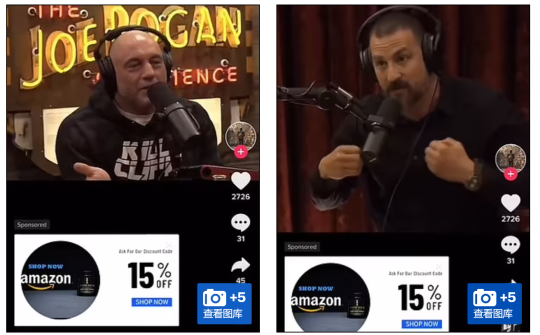 在 TikTok 短视频片段中,乔·罗根谈及这款号称能提升男性睾丸激素 100 到 200 点的产品,引导观众在亚马逊中搜索找到这个产品,在视频中为观众贴心地准备了 15% 的优惠券。