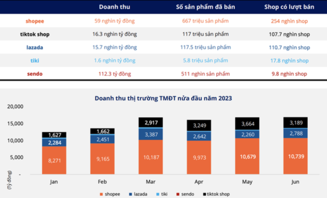 近日,越南数据研究公司 Metric 发布了 2023 年上半年电子商务市场报告。报告显示越南电子商务市场在 2023 年上半年的快速增长趋势。其中最引人注目的是,TikTok Shop 成为越南第二大电商平台,仅次于 Shopee。这意味着它在短时间内取得了显著的市场份额和竞争优势。