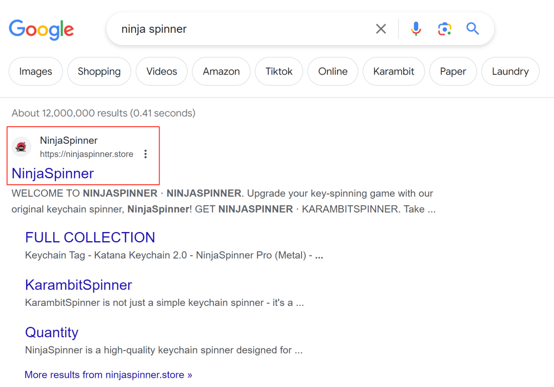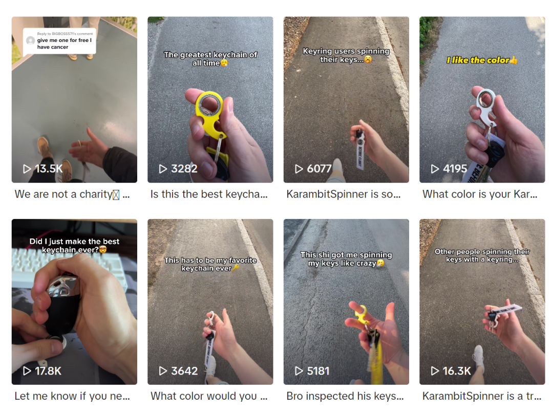 这个产品比较通用的名称是 keychain spinner (钥匙扣旋转器),而这位卖家为这个产品设计了一个独特的名称: ninja spinner (忍者旋转器)。社媒账号,社媒内容标签,网站和产品页都预埋了这个关键字。这是一个非常巧妙的设计。
