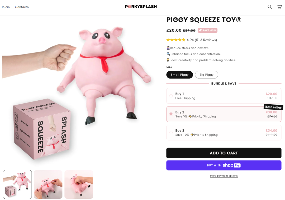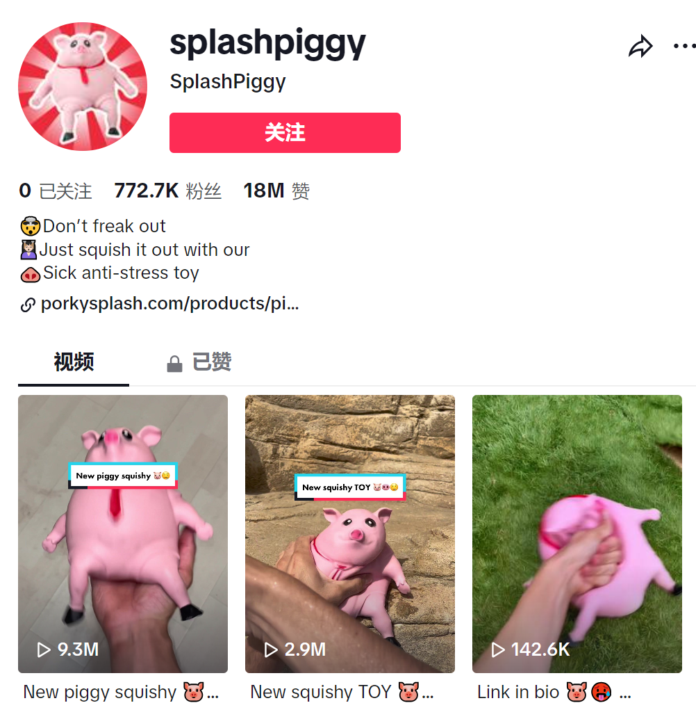 这个西班牙小哥在速卖通上发现了这个类似弹力猩猩,同样可以各种敲打,拉伸和揉捏的憨憨粉红猪。他很敏锐地感知到,这头油腻丑陋的粉红猪可以通过 TK 免费流打法打爆!