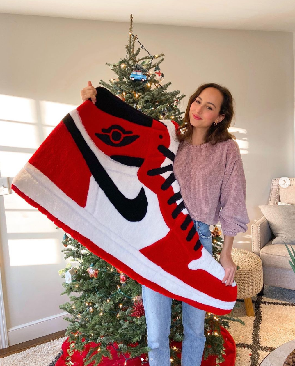 马德琳开始尝试加入一些有趣的设计,随着手艺日渐熟练,她已经可以驾驭更为复杂的图案设计。第六条视频爆发了,两百多万的播放和三十六万的点赞, 这是一块按照耐克 Air Jordan 1 产品图案做出来的地毯。