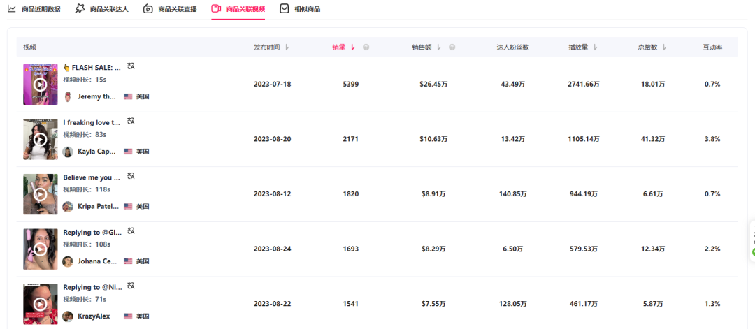 不仅如此,在 2023 年第 34 周美国 TikTok 商品销量周榜(含各品类)取得了 TOP1 的成绩,销量环比增长 719.3%。