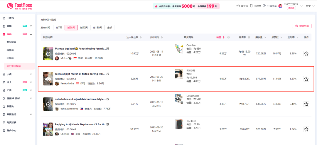 该视频还成为近 28 天热门带货视频的的 TOP2。
