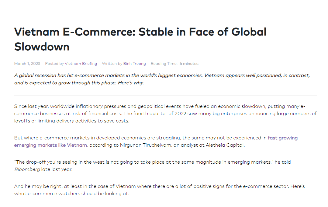 (经济下行中越南电商市场保持稳定,图源:VIETNAM BRIEFING)
