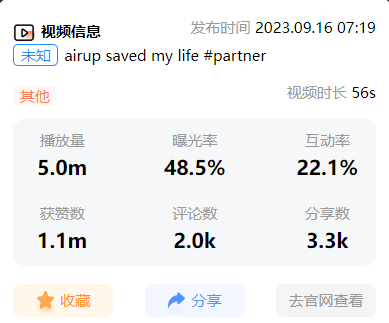 嘀嗒狗观察到,博主 @ayesebastien 于 9 月 16 日在 TikTok 上发布视频,获 500 万播放,100 万的点赞量,分享数达到 3.3k,互动率达到 22.1%。