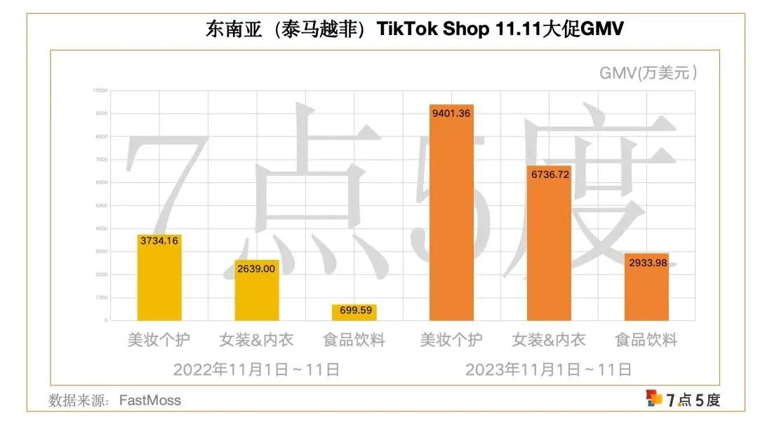 据了解,2023 年泰国、马来西亚、越南和菲律宾 TikTok Shop 上热销前三的品类为:美妆个护,女装&内衣,食品饮料。而且,美妆个护在这四个国家 TikTok Shop 上的 GMV 超 9400 万美元,较去年同期增长了 151.7%。同样,女装&内衣 GMV 同比增长 155.2%,食品饮料增长 319.3%。值得注意的是,食品饮料增幅最大。去年 GMV 排名第三的类目是男装&内衣,如今被食品饮料挤跌至第五,位列手机&数码 GMV 之后。