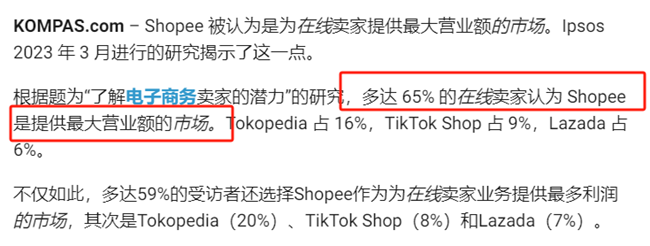 Shopee 在印尼市场的实力受到卖家认可,图源:Kompas.com