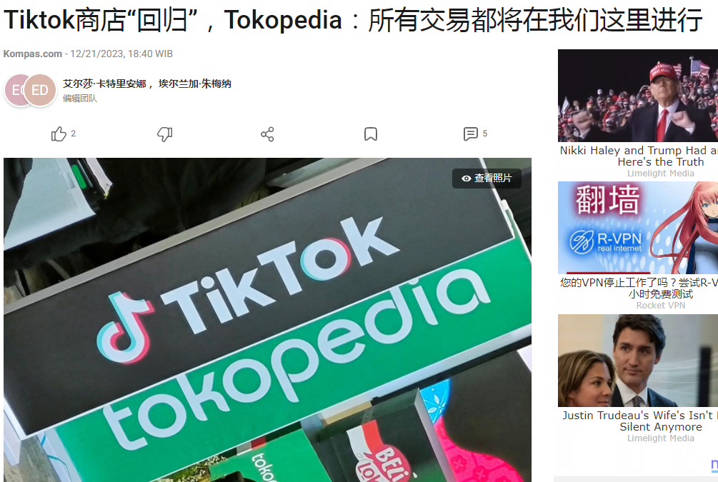 紧接着,机会悄然而至。2023 年 10 月,印尼忽然发布社交电商禁令,禁止在 TikTok 等社交媒体上进行电商交易。这样的变故,给 TikTok 在印尼的电商业务造成了极大打击。此后,为重返印尼市场,TikTok 积极寻求与印尼本土电商平台合作。最终,经过长时间的博弈与谈判,TikTok 与 Tokopedia“牵手”成功,合作共赢。