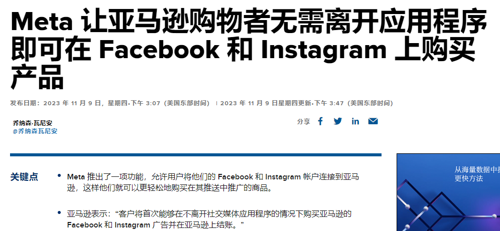 亚马逊与 Meta 合作打造社交电商闭环,图源:CNBC