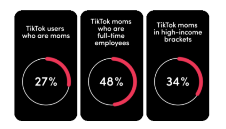 据 TikTok 官方曾公布的一组数据显示,平台用户群体中“宝妈”占比 27%,其中有 48% 为年轻的职场妈妈。她们都会熟练使用手机进行线上购物,经常活跃在 #TikTokMadeMeBuyIt 等标签中,拥有巨大的家庭购买力。