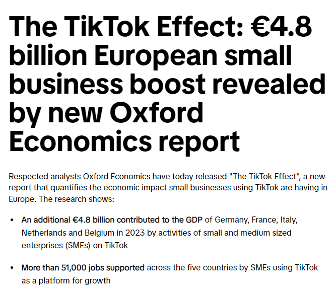 TikTok 助力欧洲经济增长,图源:TikTok Newsroom