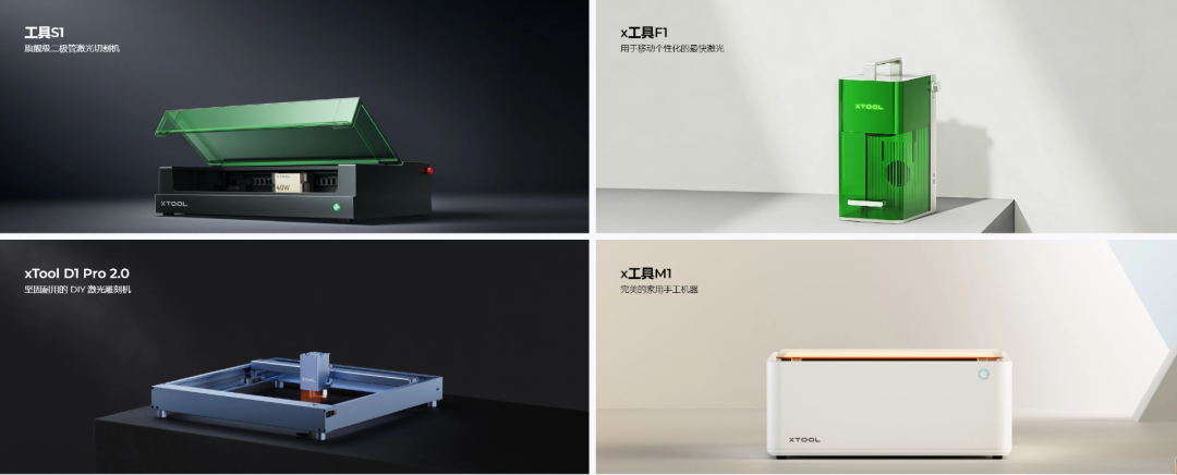 围绕家庭场景、教育场景、手工 DIY 场景,xTool 针对不同需求的用户设计出可满足从小白到资深 maker 的激光切割设备,实现了从桌面级激光设备到激光汽车机领域的全覆盖。