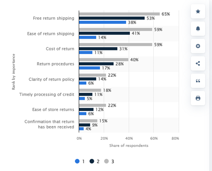 此前 Statista 的数据就显示,有 38% 的印尼消费者在网购时会优先考虑提供免费退货服务的商品,其次才会考虑退货的难易程度和综合成本。