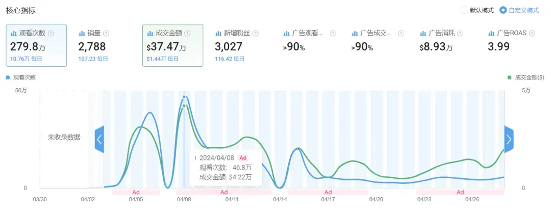 该店铺销售额排名前 22 的视频均有进行广告投放,这表明通过精准的广告投放策略,可以有效提升销量和品牌曝光度。这对于同类目商家来说,提供了一个重要的参考,即在内容创作的基础上,结合广告投放,可以进一步放大营销效果。