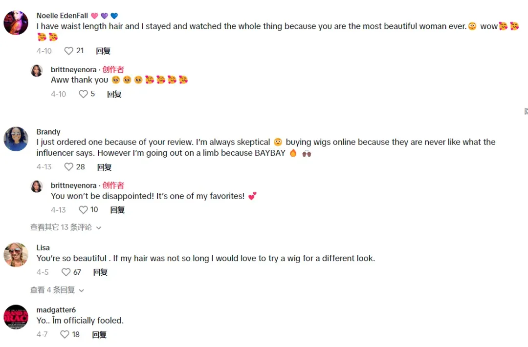 从评论区可以看出,用户对达人表示了赞美以及对这款假发也产生了浓厚的兴趣。