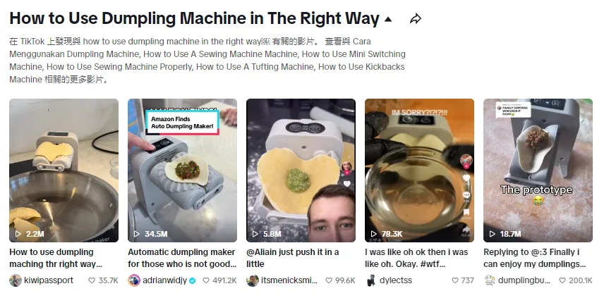 谁也没想到,一个“如何使用饺子机”的视频会在 TikTok 迅速走红,甚至连国内各大社交平台的博主也纷纷竞相效仿。