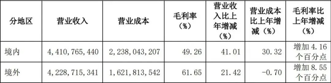 值得关注的是,2023 年石头科技在境内实现营收约 44.11 亿元,占比 50.98%;境外营收约 42.23 亿元,占比 48.80%。