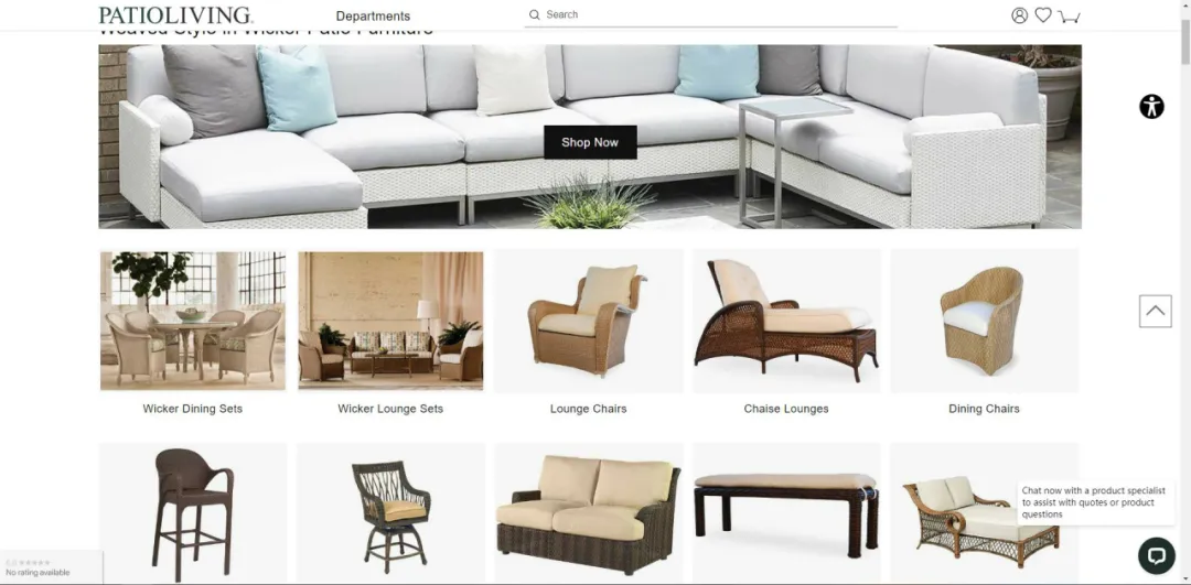PatioLiving 以高质量的藤编沙发闻名,注重舒适性和耐用性,设计美观,主要面向中高端市场的消费者,通过官网和高端家居商店销售。