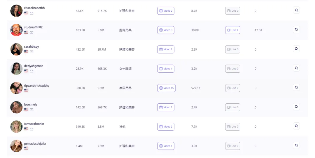 这些达人主要集中在数万至数十万粉丝区间,部分为百万级别的网红。她们主要为中青年女性,热爱家居用品,喜欢分享生活方式内容,大部分为好物分享类。这些达人的视频内容以产品展示为主,包括拆箱、组装、介绍和试用等环节,获得了不错的曝光和销量转化。