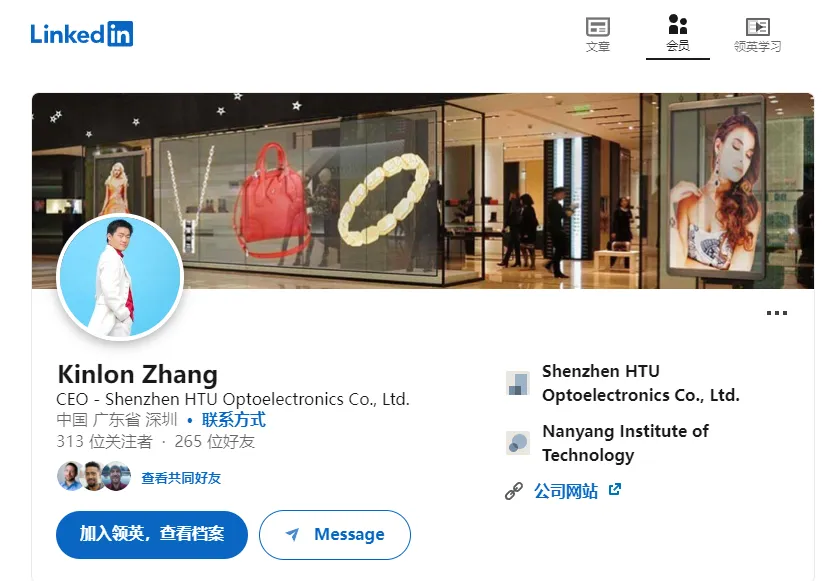 这家 LED 显示屏工厂同样就开通了领英,如图所示。
