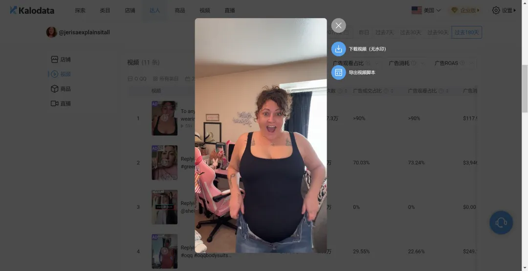 此外,自营账号也做的风生水起,成为达人带货金额中最高的账号,一个账号 GMV 近 400 万美金,主要通过直播成交,占比 90%,表明直播是 OQQ 转化销售的关键渠道。直播的互动性和即时性为观众提供了更直接的产品体验。