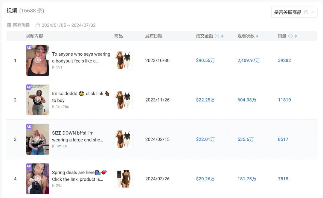 此外,从过去半年带货短视频来看,成交金额排名前 20 中有 17 条视频有投过广。OQQ 利用 TikTok 的广告平台针对特定人群进行广告投放,主要面向 18-34 岁对健身、时尚和积极生活方式感兴趣的年轻女性。