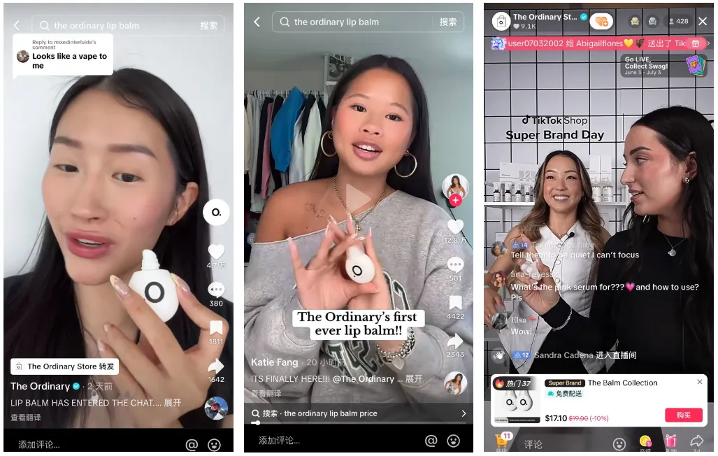 对于像 The Ordinary 这样的国际一线品牌来说,TikTok Shop 的存在不仅推动了产品销售量,还增加了品牌曝光的价值,以及他们最看重的——始终与用户保持高度的、亲密的、互动式的关系。