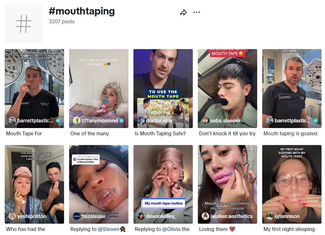 为了解决睡觉打鼾问题,去年 TikTok 上就兴起过一种具有潜在危险性的“胶带封嘴”话题挑战,要求用户在睡觉前用胶带封住自己的嘴,阻止嘴巴张开打鼾,迫使用鼻子进行呼吸。