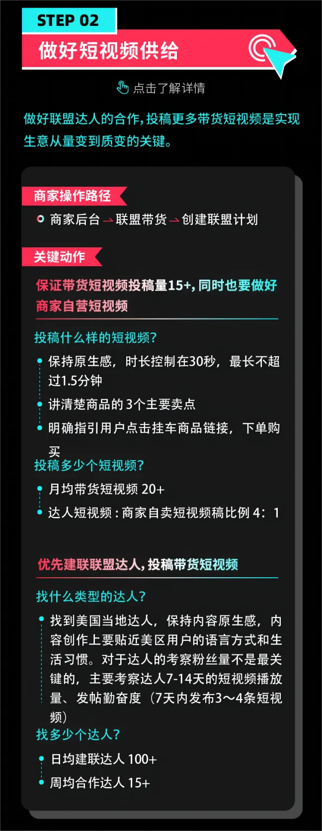 TikTok 提供全方位的运营支持,从选品、视频制作、推广到售后服务,覆盖整个营销链路。商家可以通过平台的运营指导和工具,优化产品的推广策略,提高营销效果。